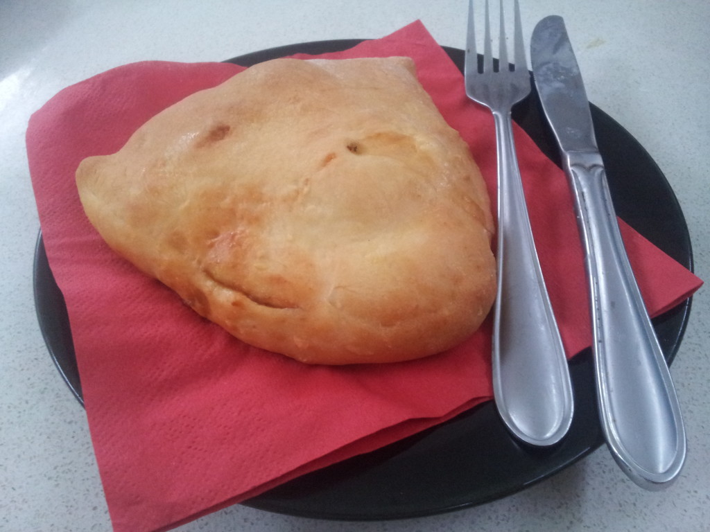 - When you're done, fold the other half over the toppings creating a parcel and pinch right round to seal. Prick the top a couple of times with a fork to let some steam out. Bake in a preheated oven at 200ºC for 15-20 minutes.