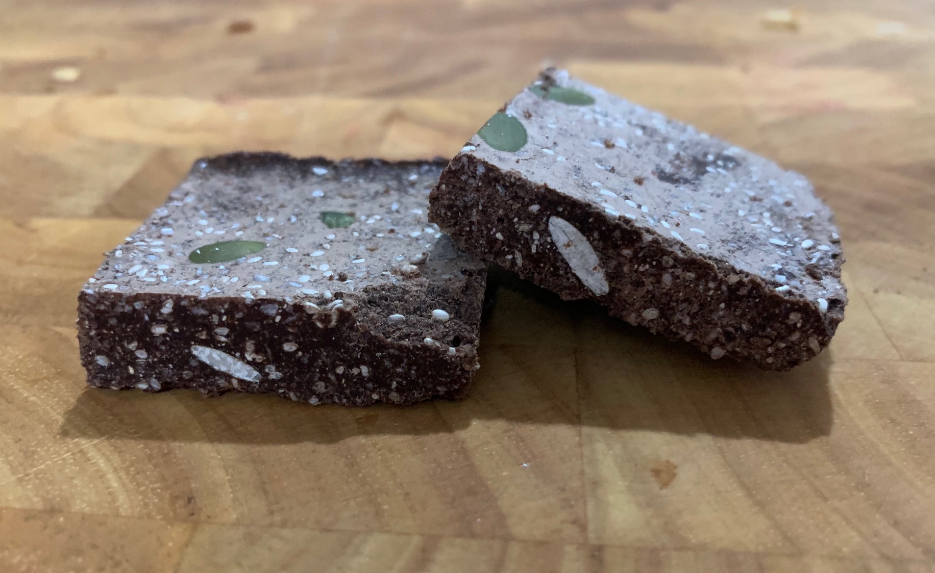 - Pour into 19cm x 28cm tray, sprinkle with extra chia and pumpkin seeds.